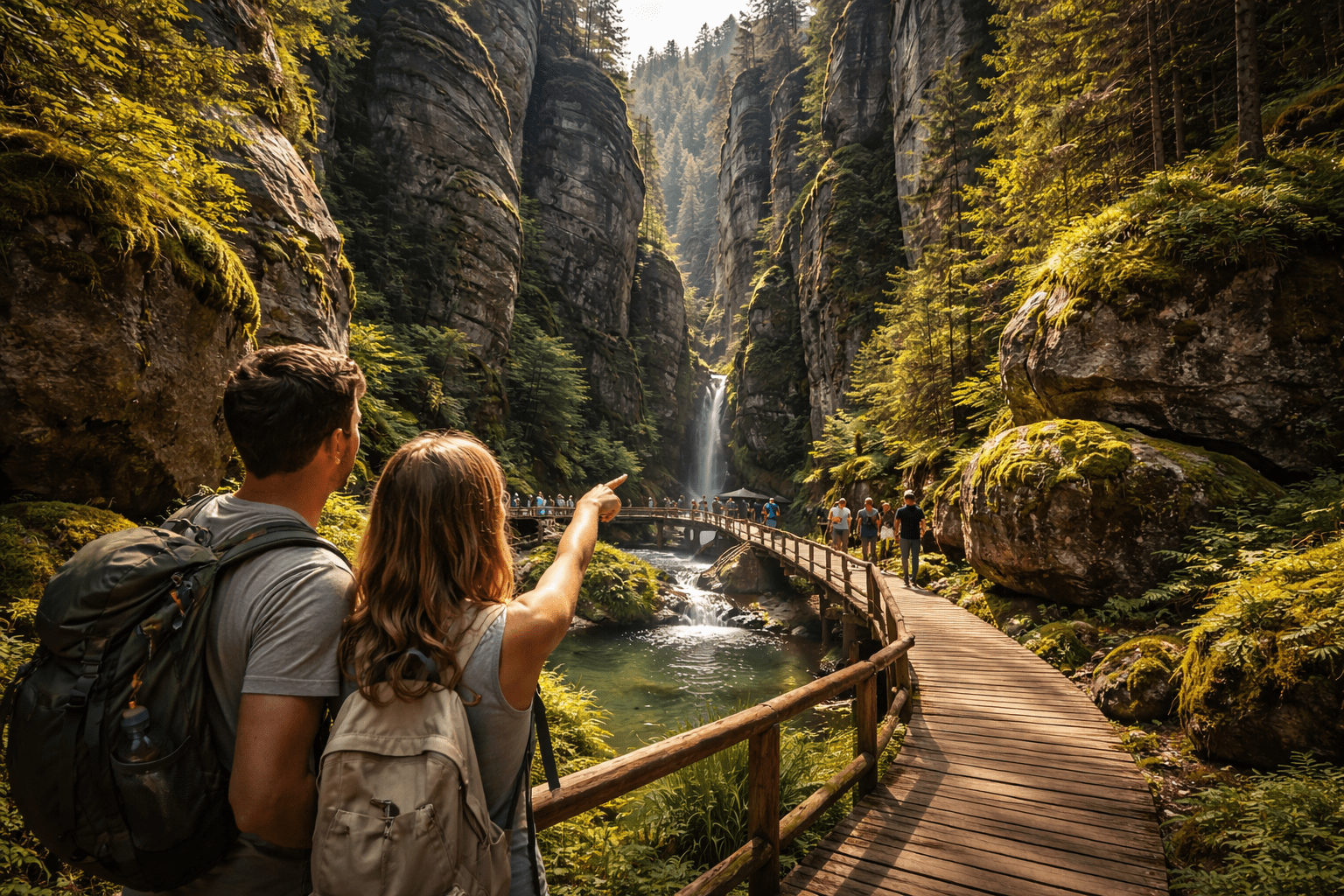 On this full-day tour to Adršpach-Teplice Rocks, you can expect a unique combination of spectacular nature, light hiking, and an authentic Czech experience. After a comfortable hotel pick-up and scenic drive, you will explore the main circuit of the Adršpach sandstone formations, walking through towering rock pillars, narrow passages, and peaceful forest paths. The hike is easy to moderate, with plenty of time to stop, take photos, and enjoy the dramatic scenery.