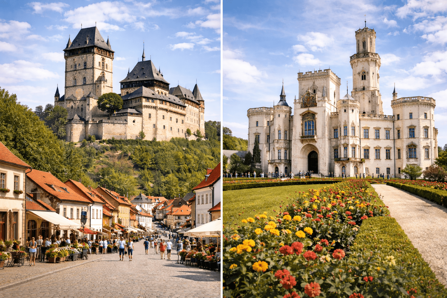 On this full-day tour, you will travel from Prague to two of the Czech Republic’s most iconic castles. The morning is dedicated to Karlštejn Castle, founded by Emperor Charles IV as a secure place for royal treasures and crown jewels. After a comfortable drive, you will enjoy a guided visit of the castle, learning about medieval history while taking in panoramic views of the surrounding countryside, followed by lunch at a local restaurant in the village.